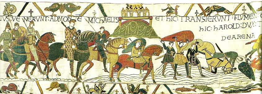 ...HAVE COME TO MONT ST. MICHEL - AND HERE THEY HAVE CROSSED THE RIVER COUESNON - HERE DUKE HAROLD...