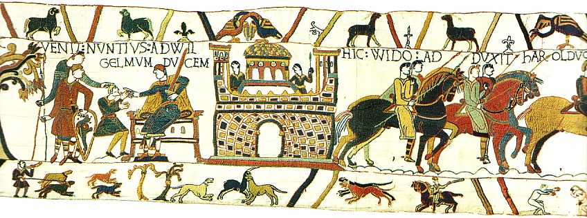 ...A MESSENGER HAS COME TO DUKE WILLIAM - HERE GUY HAS LED HAROLD...