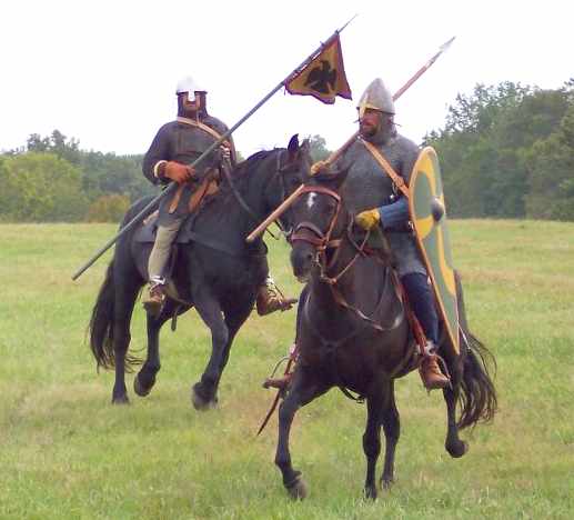 The "FitzOsberns", Jesse Bailey on the right and Andy Lang. Jesse's kit was impeccable, Andy's only a crack less, and the two of them set a standard for all the Norman cavalry to emulate.