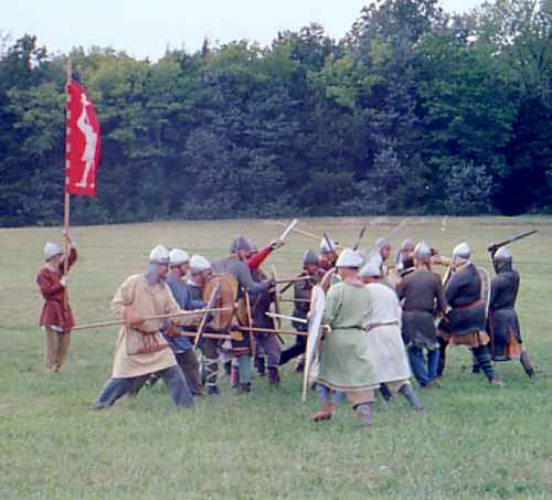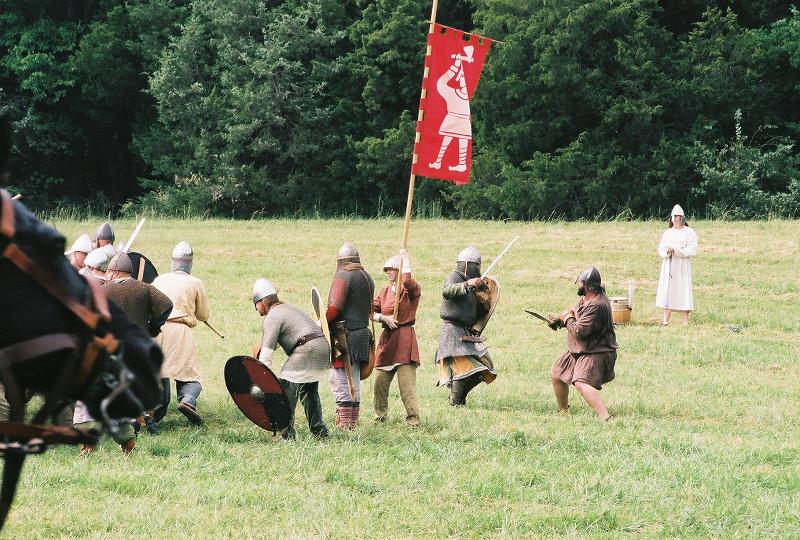 This is a pic of the opening of the third go at Hastings, also unscripted. The Norman foot close with us English types. Arild Barrett and I are on the end.