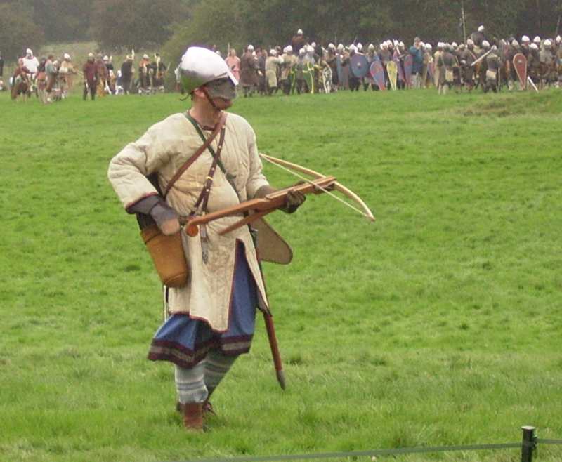 During a lull, you can see my Dane axe stuck upright in the ground to the right of the funky archer with the furry hat (how did he get past the kit inspection with that head piece?).