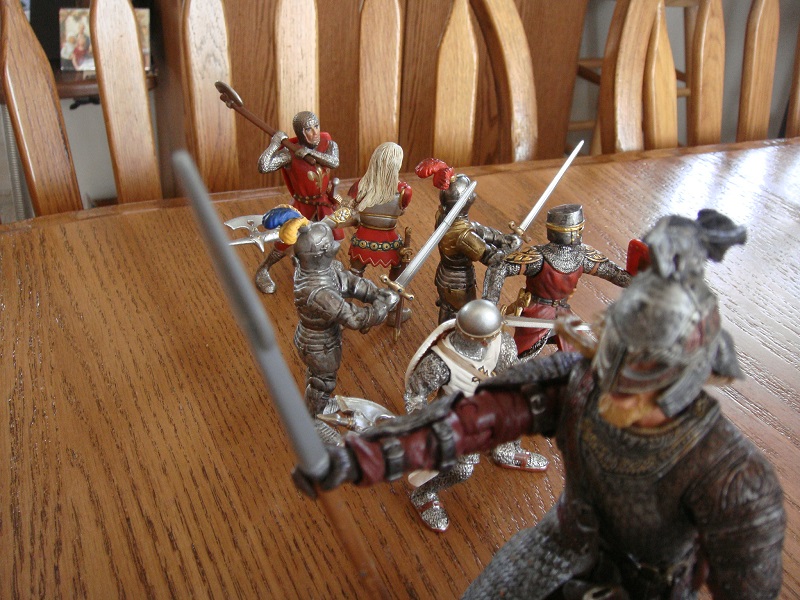 On the left is "the mercenary", then Hansgard the Teutonic Knight, Prince Richard, Sir Alexander, "Val" and Richard's man-at-arms.