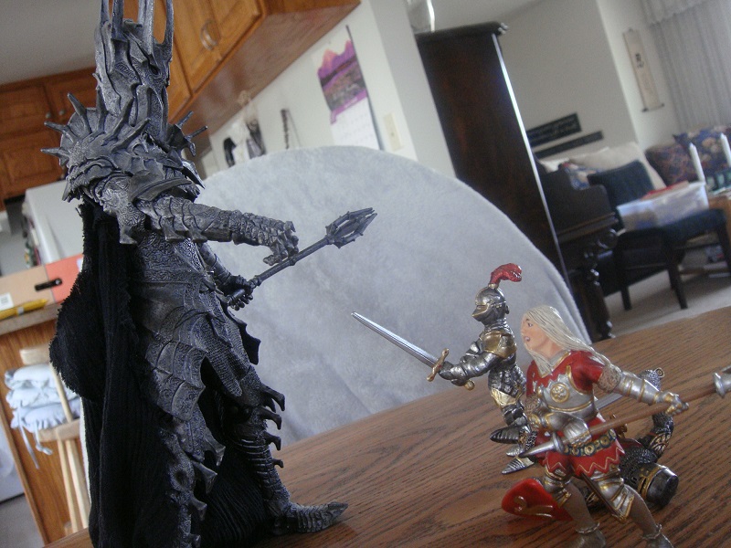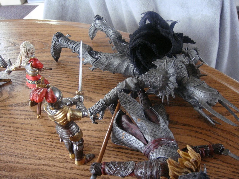 King Merlin's own angst increases as the weeks of basking in his son's glory turn into months. When he learns of yet another rumor, nay legend, of a fiery serpent (aka a dragon) infesting the hills of a neighboring lordship, he decides that an exploit of his own is in order. His son offers to accompany him, and bring the unmatched prowess of his champion, Sir Alexander. But Merlin says that he will, instead, leave the prince and the main strength of the realm to guard it in the absence of their king. Prince Richard cannot publicly flout his father's authority, nor does he wish to do so in order to enjoy another adventure.
