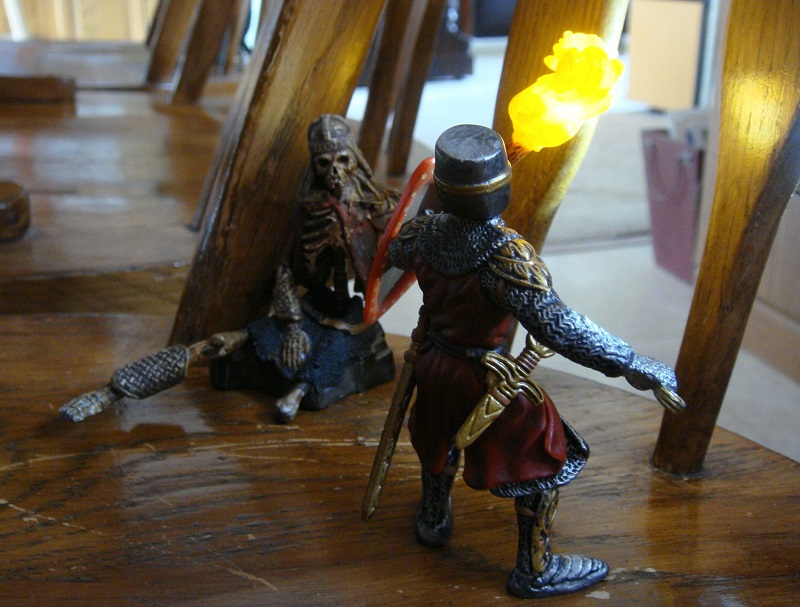Some two weeks following their narrow victory and escape, the party is ready to go home. But to safeguard their treasure, Sir Alexander agrees to return to the vale and stand watch with the mercenary over it until the rest of them can return with pack animals and carry it off. So, plans having been made, that is exactly what happens. It turns out that nobody in the hamlet possesses the courage to follow up any curiosity they may have; and the champion and the mercenary did not in fact have to confront anyone while they waited for the prince, Val and Hansgard to return; which they did within a fortnights time.