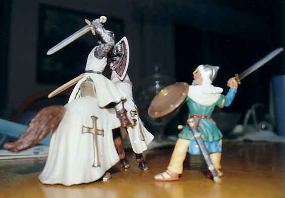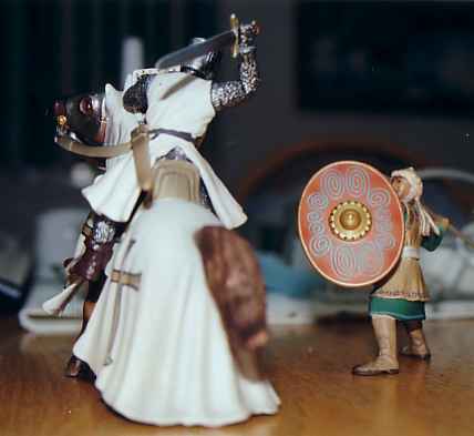 Ricky was using his new Schleich Saracen army. I was using the crusaders that we got for Christmas last year.