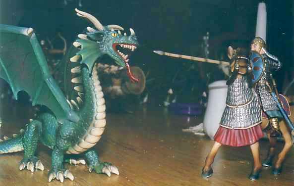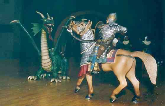 A legendary confrontation of the time says that one emir Ibn Ali al-Mumit al-Masaffah had met a dragon while out adventuring alone. He had succeeded not only in not running away, and keeping his terrified horse under control, but had also managed to ram his lance in the dragon's mouth, at which point the beastie departed with amazing alacrity. Of course, the proof of this tale was lacking in every respect, except for some uncanny scales of the dragon's armor plate which it had either shed in its abrupt rout to the air, or which al-Masaffah's lance had pried off. Or, more probably, he had come across them in his travels and kept them and then concocted the story of his confrontation with the dragon. Certain it is, that the emir relished telling and retelling of his fantastic exploit, until it was the most famous detail known about him. His sobriquet, which loosely applied means "many ranks", was bestowed by his earliest listeners, because of his oft-repeated metaphor: of how he and his single mount had withstood the dragon more firmly than a formation of spearmen many saff deep.