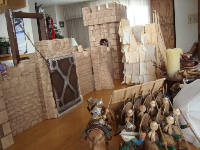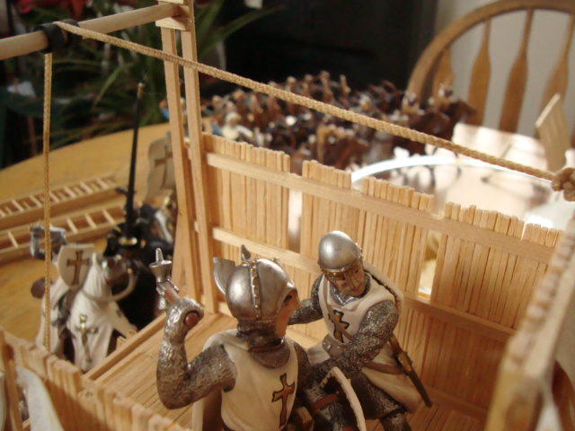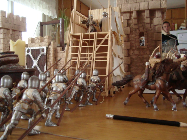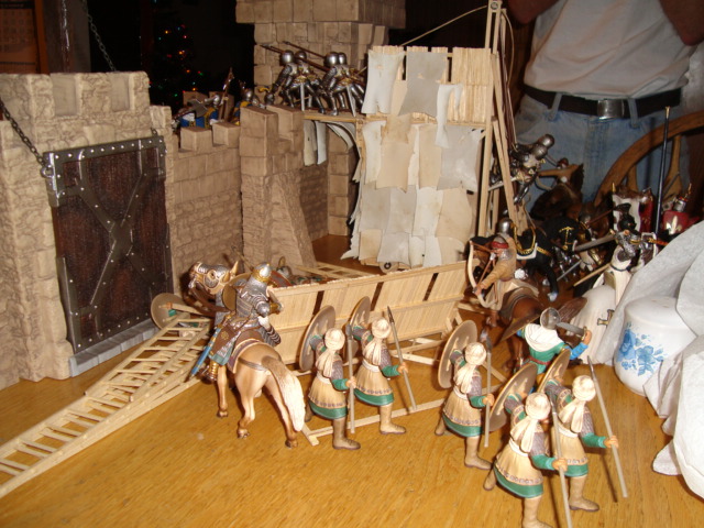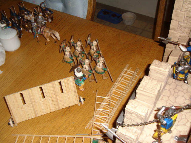 With rapid professionalism, a siege tower is constructed and manned. The Muslims take the left, the Black Knight's men the right.