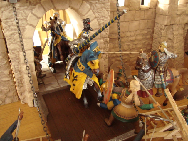 When Richard had learned of a compact between his erstwhile mercenaries, and his father's treacherous "friend", he knew at once that the kingdom was about to be defeated in detail. So, not letting the past prevent him from doing the wise thing, he mustered his retinue as quickly as possible and entered his father's realm. The Black Knight and al-Masaffah learned of Richard's approach, but felt confident in reducing the castle before he could intervene.