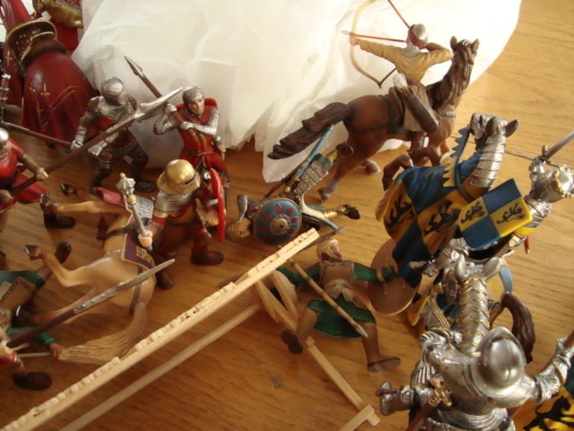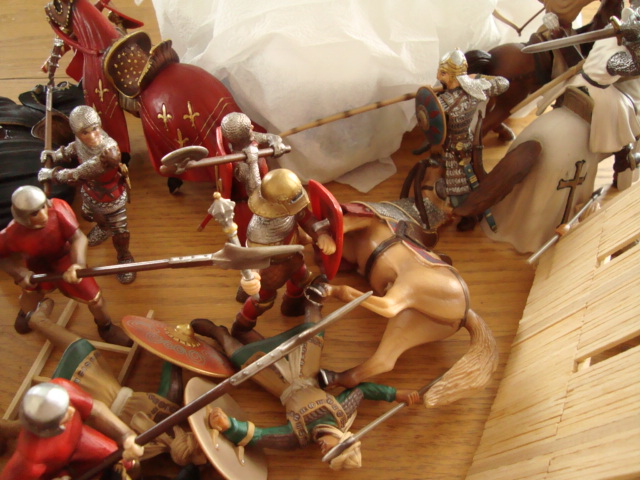 The emir steers his horse between the last of his fleeing men and the thronging enemy. His lance keenly lifts one of Richard's knights from his saddle. But an axe-wielding footman brings down al-Masaffah's horse.