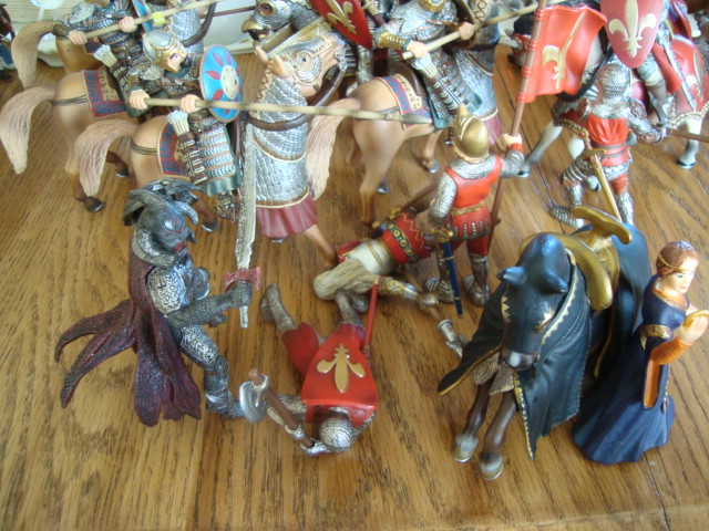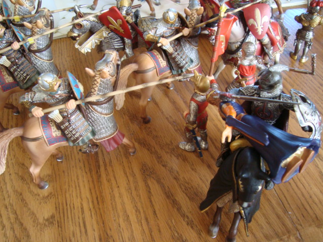 The princess is mounted on a black caparisoned palfrey (we wanted a mounted girl figure of course, but had to make do).