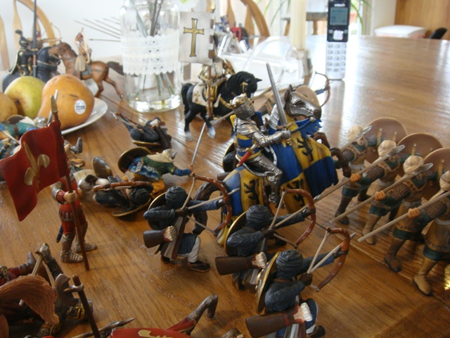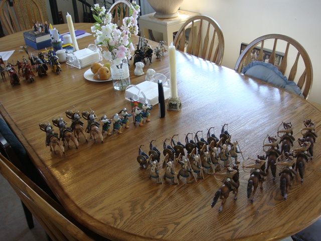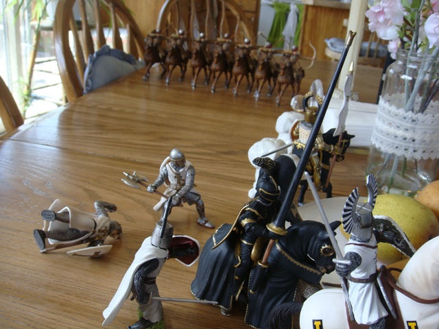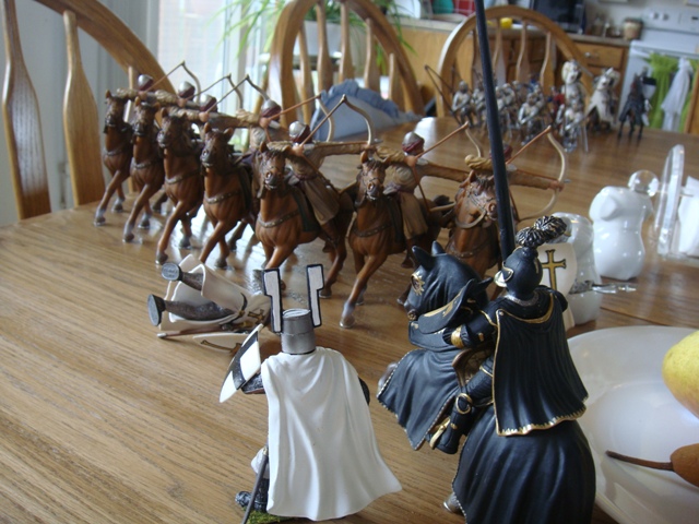 The horsearchers draw down on the Crusader Knights.